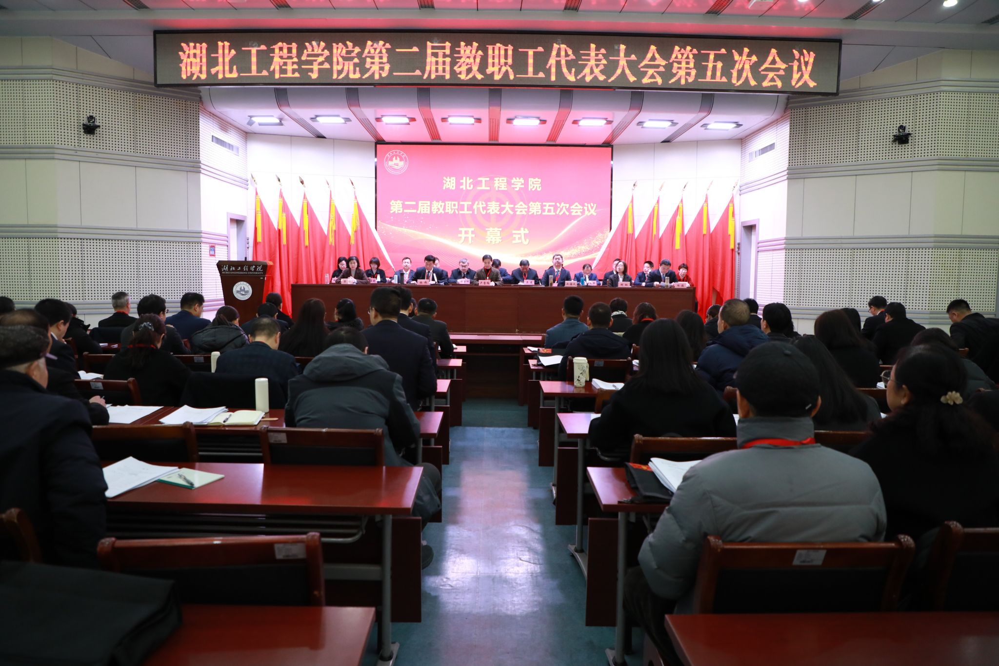 1月9日,湖北工程学院第二届教职工代表大会第五次会议在文学楼报告厅胜利召开。校领导卢雪梅、汪海波、陈伟、邹虹、李渺、郑俊、熊曾刚出席会议。大会主席团成员在主席台就座。上午的开幕会由学校党委副书记、工会主席陈伟主持,党委副书记、校长汪海波主持了下午的闭幕会。上午九时,在确认代表到会人数符合法律规定后,大会在庄严而嘹亮的国歌声中开幕。党委副书记、校长汪海波在开幕会上作了工作报告。报告从以下七个方面对学校2025年的工作成绩进行了回顾与总结:...