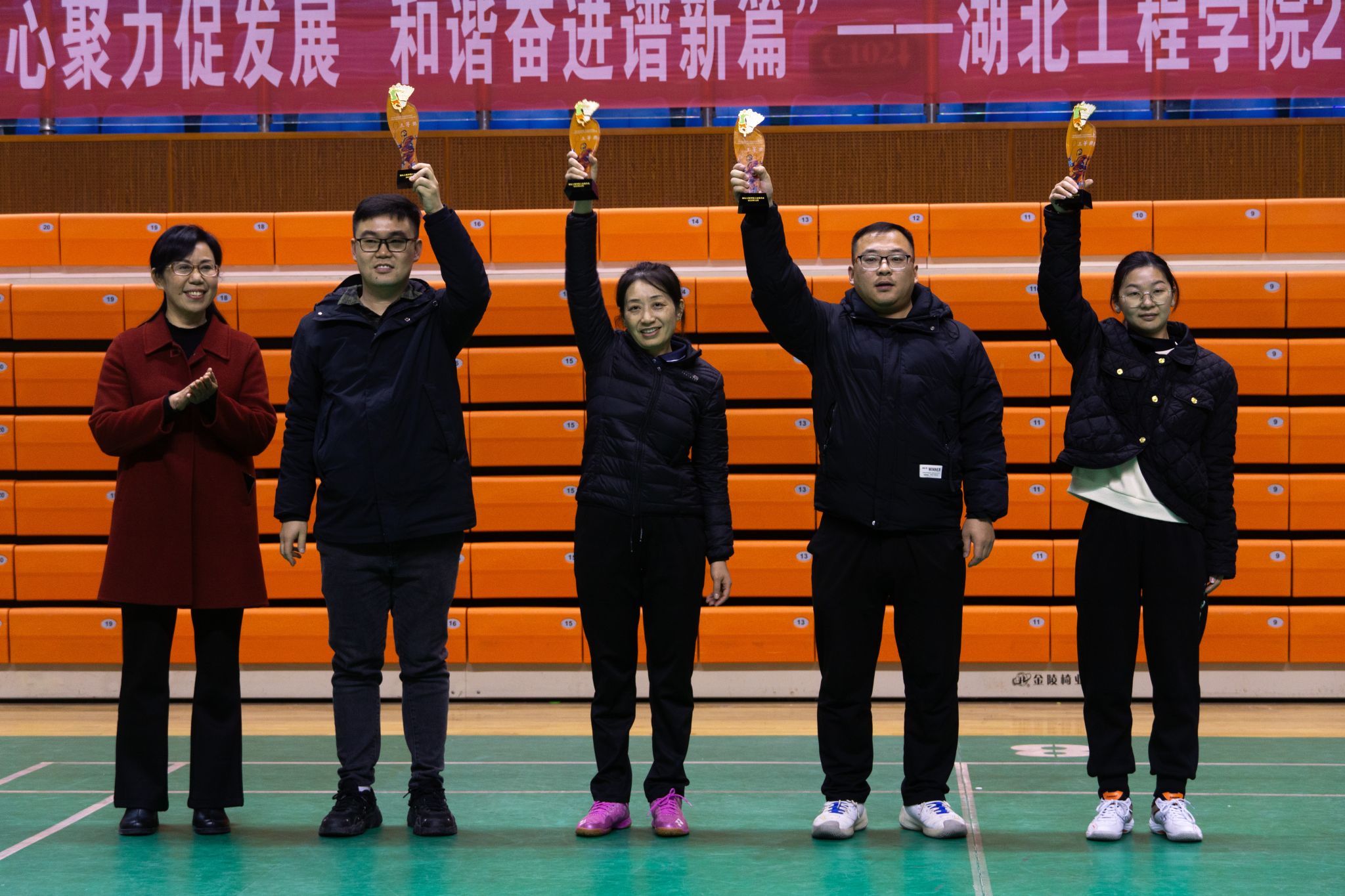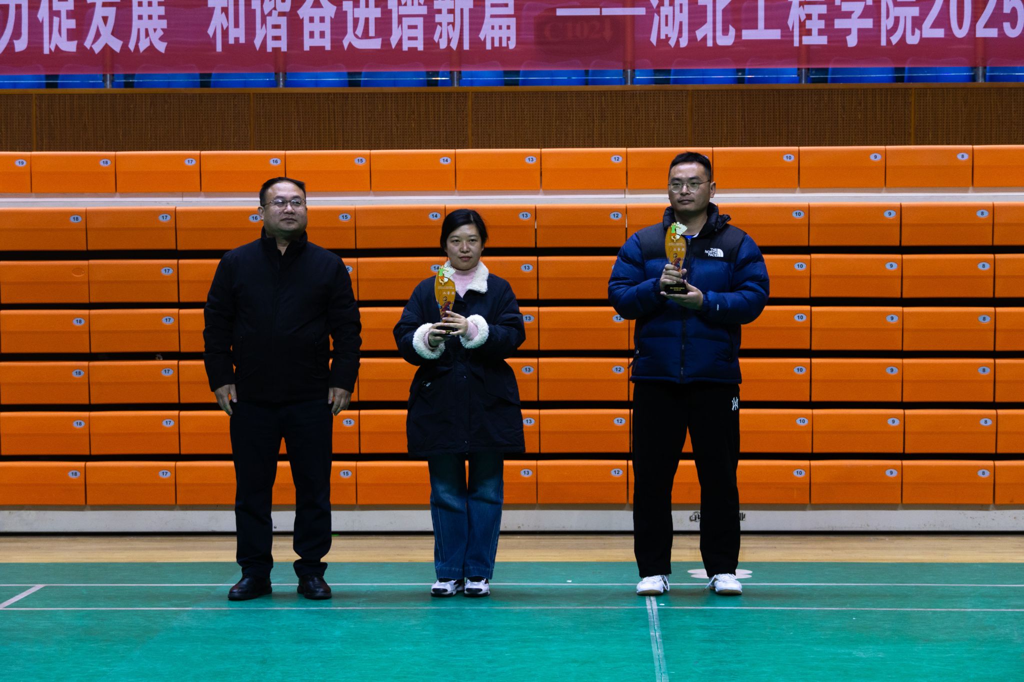 12月4日晚,由校工会主办、体育学院承办的“凝心聚力促发展、和谐奋进谱新篇”——学校2025年教职工羽毛球赛在湛林体育馆正式落下帷幕。学校党委副书记、工会主席陈伟,工会常务副主席魏言菊,体育学院分党委书记张东等出席闭幕式并为获奖队伍颁奖。 本届比赛自12月1日起打响,全校20支分工会代表队、200余名运动员在4天内展开52场激烈角逐。赛事沿用“男双——女双——混双”3场2胜制,第一阶段小组单循环抢15分,第二阶段淘汰赛抢21分,既考验排兵布阵,也挑战体能与意志。最终,计算机与信息科学学院、机关二代表队斩获一等奖,新技术学院、经济与管理学院代表队分获二等奖,美术与设计学院、生命科学学院˙农学院、马克思主义学院、土木工程学院等4支代表队获得三等奖,体育学院荣获“突出贡献奖”。