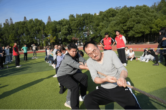 本届运动会教工组赛事设置丰富多元,共设19个竞技项目,包括青年男子与女子100米、4×100米接力,中青年男子与女子跳绳、掷实心球、立定跳远,青年男子1500米、青年女子800米,以及男女混合团体拔河等。项目兼顾速度、力量与团队协作,充分满足了不同年龄段教职工的参赛需求。